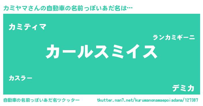 | 男性向けラノベタイトル風あだ名 | 『転生したらカミヤマだった件』 |