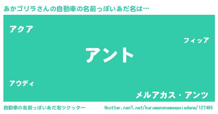 | 男性向けラノベタイトル風あだ名 | 『あかゴリラの嫁は女の子じゃないと思った?』 |