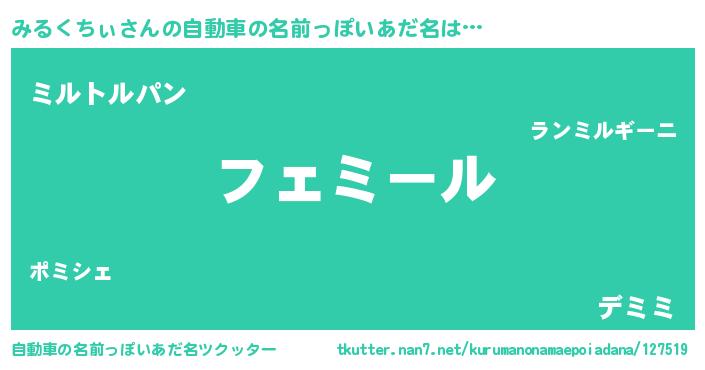 | 意味不明あだ名 | 『とにかく怪しいみるくちぃ』 |