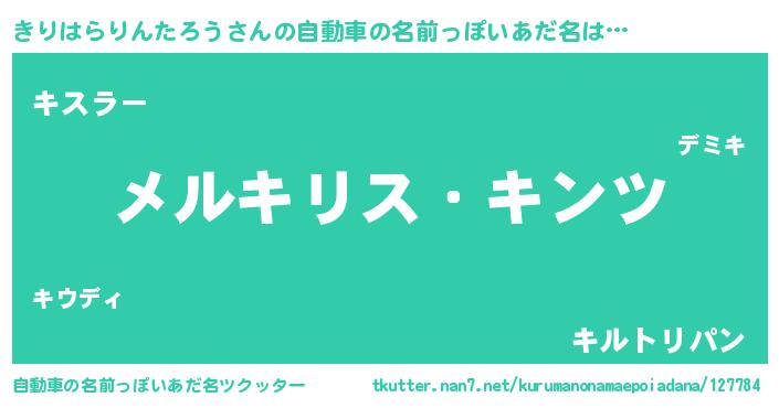 | 男性向けラノベタイトル風あだ名 | 『Re:きりはらりんたろうから始める異世界生活』 |