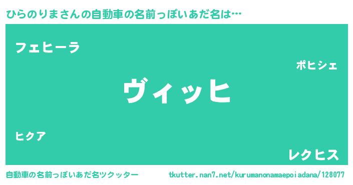 | ヘコむあだ名 | 『ひらのりま(遠い目)』『なまこ酢』 |