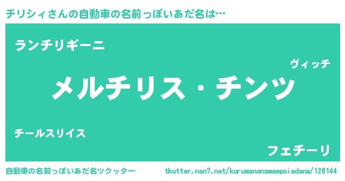 | 男性向けラノベタイトル風あだ名 | 『Re:チリシィから始める異世界生活』 |