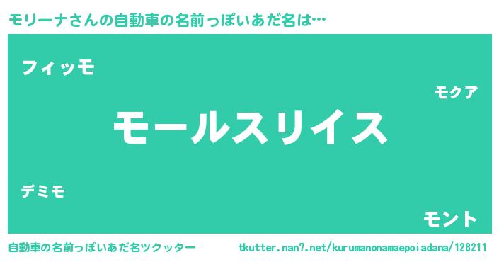 | 男性向けラノベタイトル風あだ名 | 『モリーナ~年齢イコール彼女いない歴の魔法使い~』 |