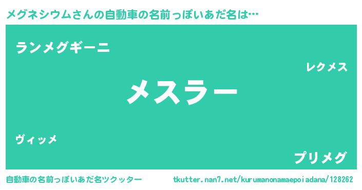 | ファンタジー風あだ名 | 『エターナルメグネシウムー』 |