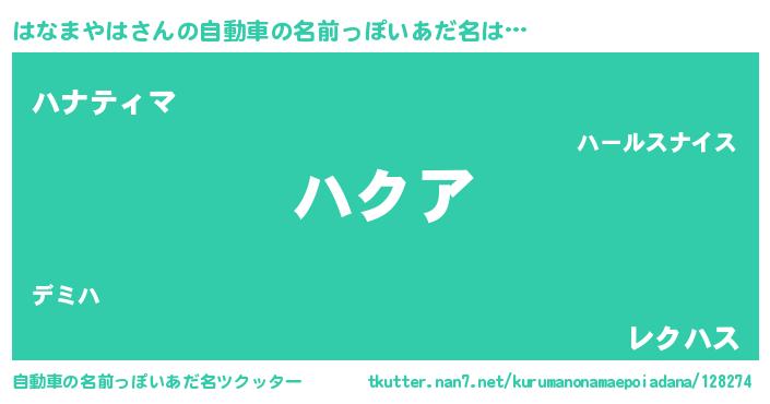 | 女子向けラノベタイトル風あだ名 | 『はなまやはの雑貨屋さん』 |