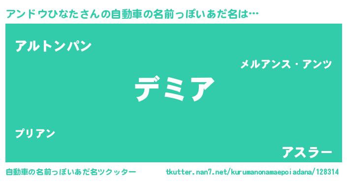 | 意味不明あだ名 | 『永久保存アンドウひなた』 |