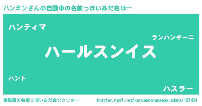 | 男性向けラノベタイトル風あだ名 | 『転生したらハンミンだった件』 |