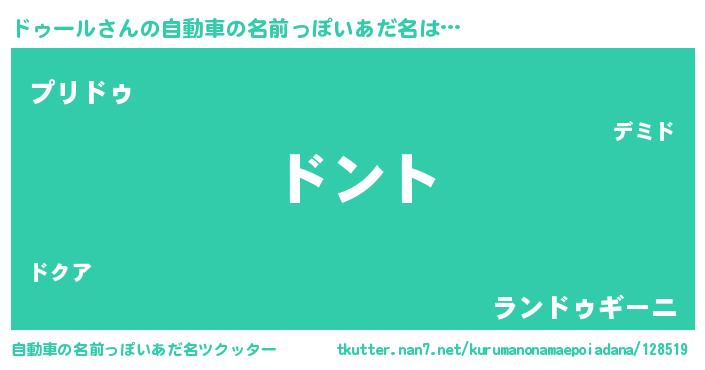 | 男性向けラノベタイトル風あだ名 | 『ドゥールの嫁は女の子じゃないと思った?』 |