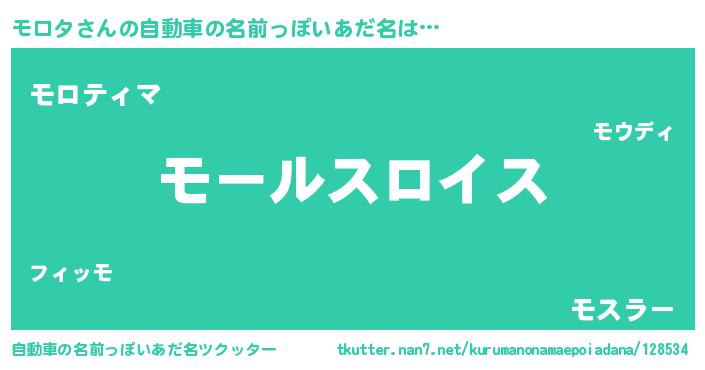 | 男性向けラノベタイトル風あだ名 | 『転生したらモロタだった件』 |