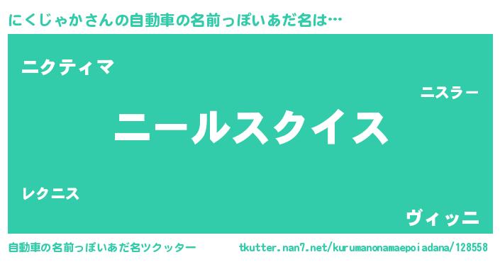 | 男性向けラノベタイトル風あだ名 | 『転生したらにくじゃかだった件』 |