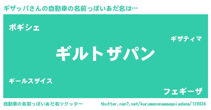 | 男性向けラノベタイトル風あだ名 | 『ダンジョンにギザッパを求めるのは間違っているだろうか』 |