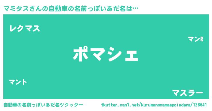 | 男性向けラノベタイトル風あだ名 | 『この素晴らしい世界にマミタスを!』 |