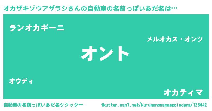| 男性向けラノベタイトル風あだ名 | 『オカザキゾウアザラシの嫁は女の子じゃないと思った?』 |