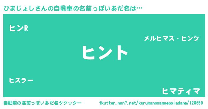 | 男性向けラノベタイトル風あだ名 | 『ひまじょしの嫁は女の子じゃないと思った?』 |