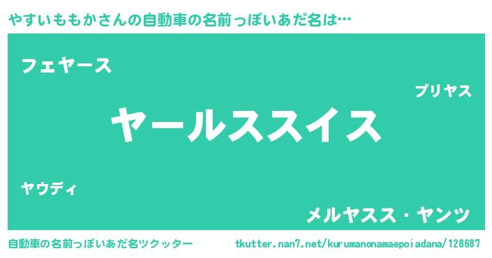 | 男性向けラノベタイトル風あだ名 | 『やすいももか~年齢イコール彼女いない歴の魔法使い~』 |