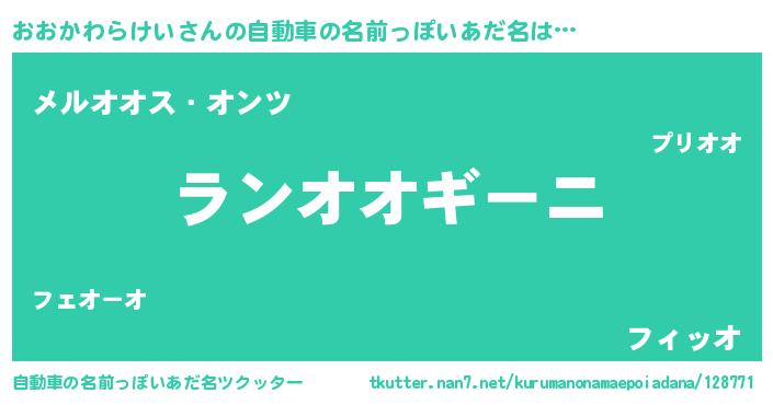 | 意味不明あだ名 | 『自称おおかわらけい』 |