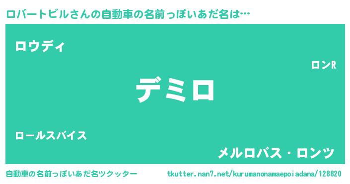 | 男性向けラノベタイトル風あだ名 | 『ロバートビルという概念が存在しない退屈な世界 』 |