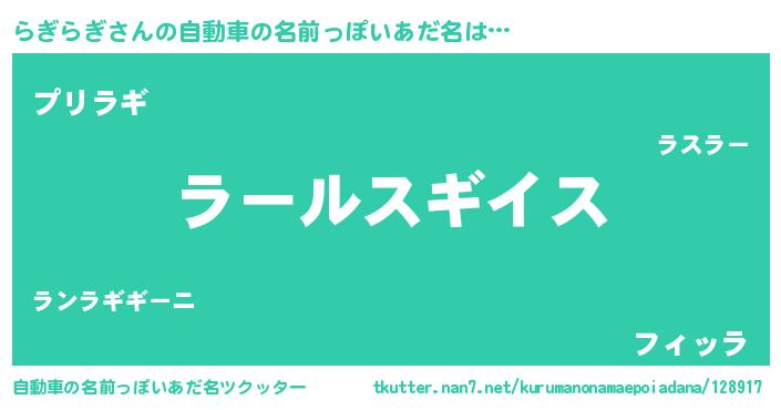 | 男性向けラノベタイトル風あだ名 | 『ラギラギスレイヤー』『らぎらぎの憂鬱』 |