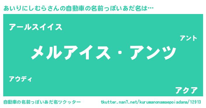 | 意味不明あだ名 | 『自称あいりにしむら』 |