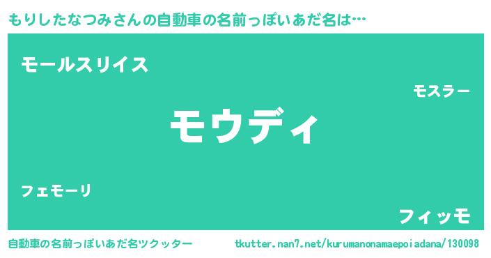 | 女子向けラノベタイトル風あだ名 | 『乙女ゲームの破滅フラグしかない悪役もりしたなつみに転生してしまった…』 |