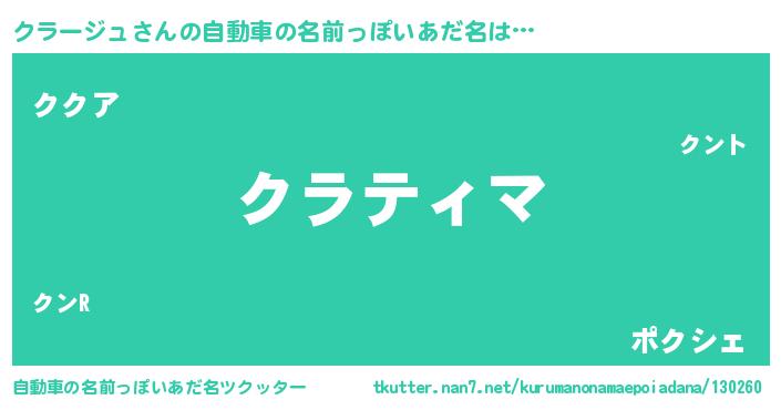 クラージュさんの自動車の名前っぽいあだ名をツクッター!