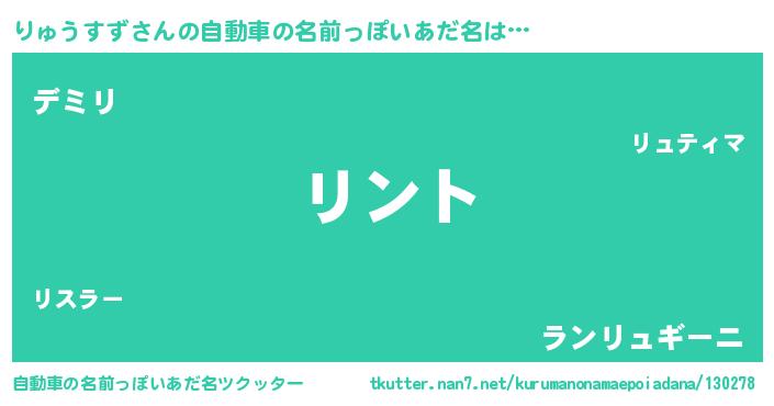 | 男性向けラノベタイトル風あだ名 | 『りゅうすずの嫁は女の子じゃないと思った?』 |