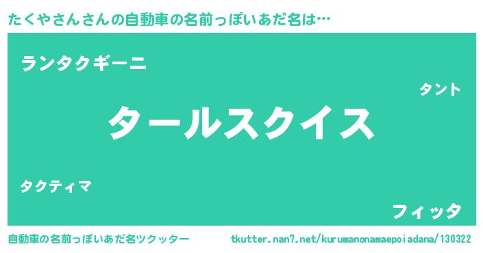 たくやさんさんの自動車の名前っぽいあだ名をツクッター!