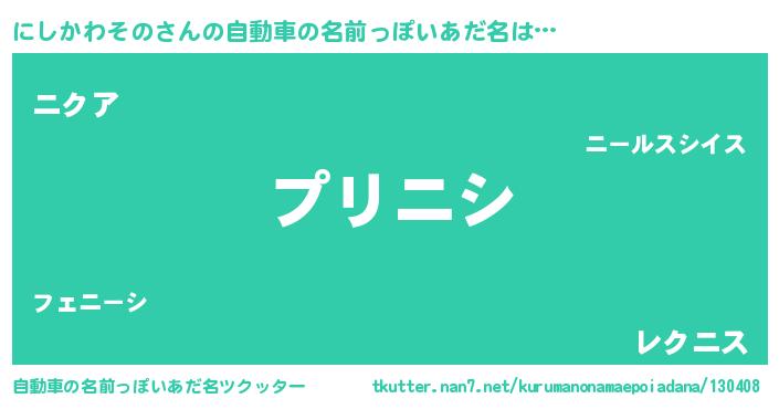 | ポケモン風あだ名 | 『ニシチュウ』『ニシカダネ』 |