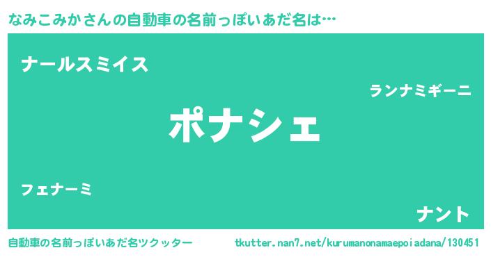 | 男性向けラノベタイトル風あだ名 | 『この素晴らしい世界になみこみかを!』 |