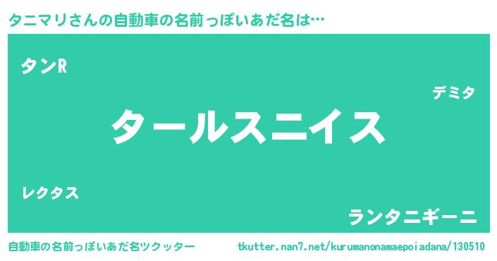 | 欧米人風あだ名 | 『トリンドルタニマリ』 |