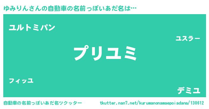 | 女子向けラノベタイトル風あだ名 | 『(仮)ゆみりんのやんごとなき事情』 |