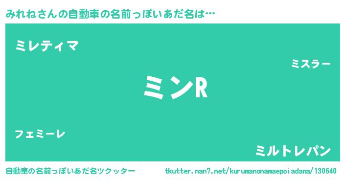 | 女子向けラノベタイトル風あだ名 | 『死神みれねの再婚』『みれねの婚約者』 |