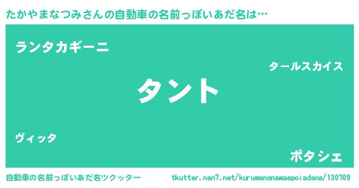 たかやまなつみさんの自動車の名前っぽいあだ名をツクッター!
