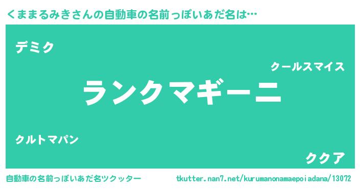 | 胡散臭い通販商品みたいなあだ名 | 『絶対に幸福をもたらす水素水…その名も「くままるみき」』 |