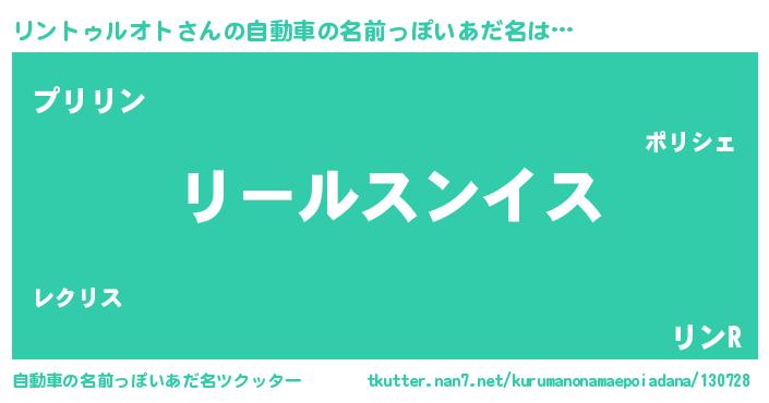 | 男性向けラノベタイトル風あだ名 | 『リントゥルオトスレイヤー』 |