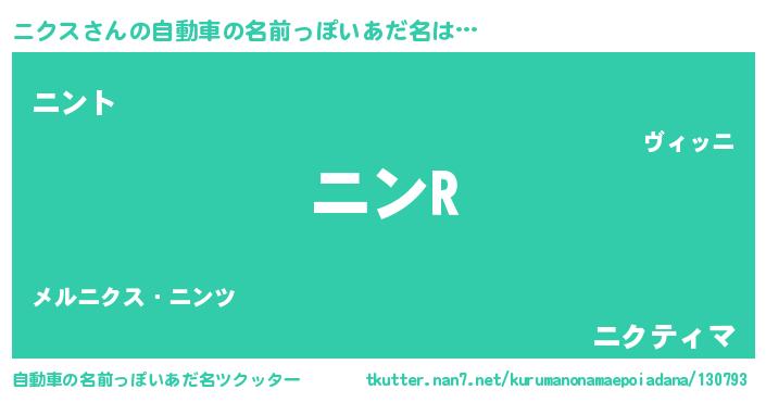 | ポケモン風あだ名 | 『ニックウザ』『ヒニクス』 |
