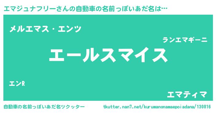 | 男性向けラノベタイトル風あだ名 | 『エマジュナフリー~年齢イコール彼女いない歴の魔法使い~』 |