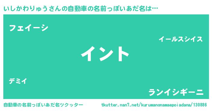 | 男性向けラノベタイトル風あだ名 | 『いしかわりゅうの嫁は女の子じゃないと思った?』 |