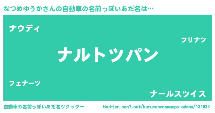 | 欧米人風あだ名 | 『ウサインなつめゆうか』 |