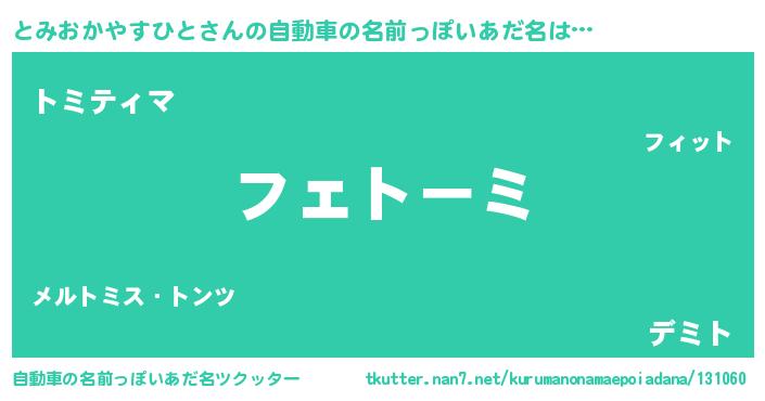 | 胡散臭い通販商品みたいなあだ名 | 『億万長者になれるブレスレット…その名も「とみおかやすひと」』 |