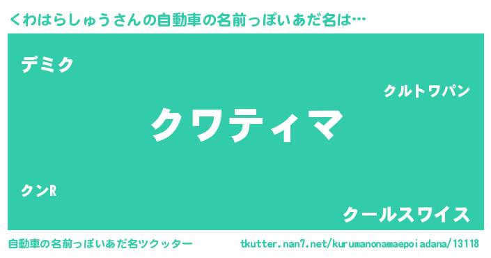 | ヒーロー風カッコイイあだ名 | 『スーパークワハラシュウ』 |