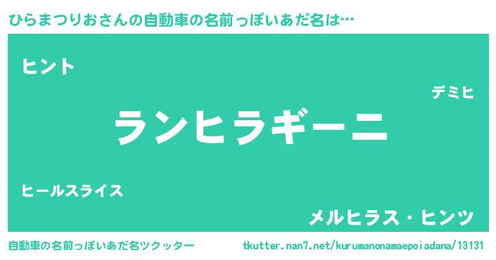 | 意味不明あだ名 | 『とにかく怪しいひらまつりお』 |