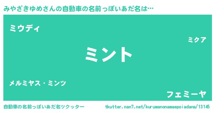| ポケモン風あだ名 | 『ヒミヤザキユメ』『ミーヤイ』 |