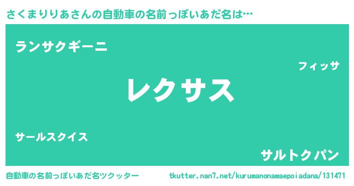 | 意味不明あだ名 | 『自称さくまりりあ』 |
