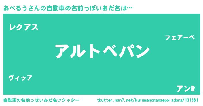 | 意味不明あだ名 | 『とにかく怪しいあべるう』 |