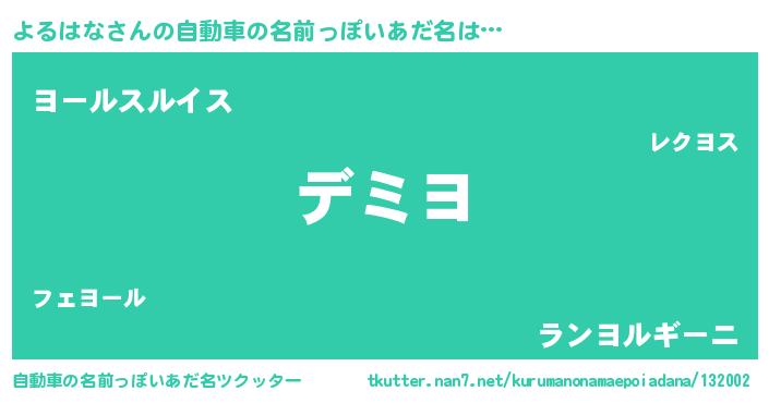 | 意味不明あだ名 | 『永久保存よるはな』『自称よるはな』 |