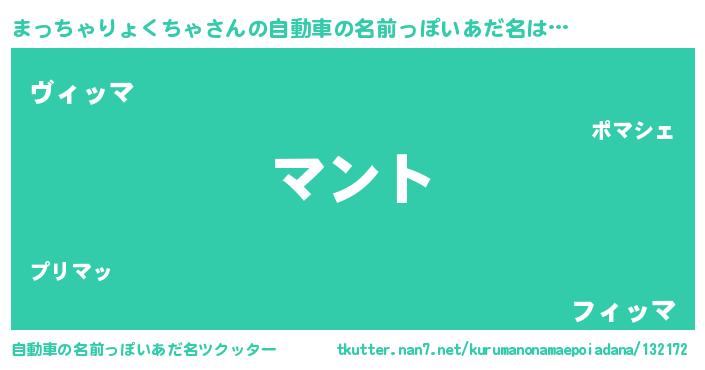 | 男性向けラノベタイトル風あだ名 | 『まっちゃりょくちゃの嫁は女の子じゃないと思った?』 |