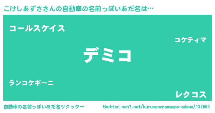 | 男性向けラノベタイトル風あだ名 | 『こけしあずさという概念が存在しない退屈な世界 』 |