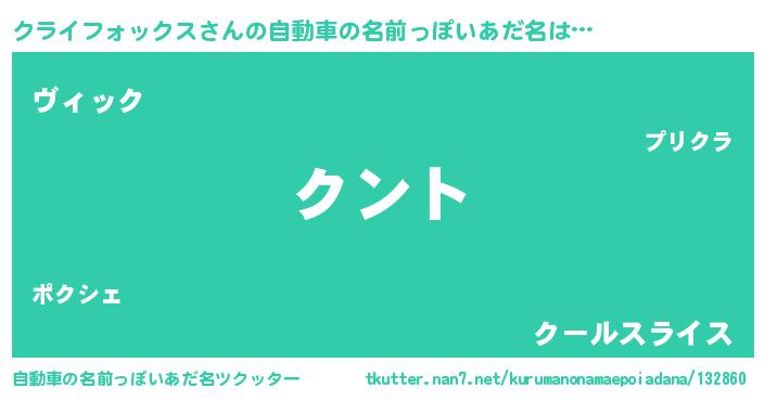 クライフォックスさんの自動車の名前っぽいあだ名をツクッター!