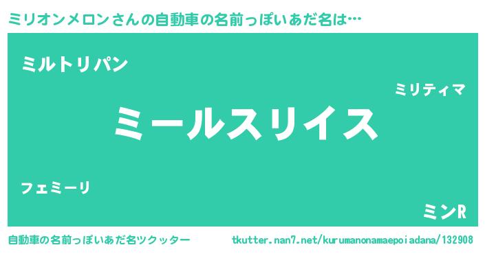 | 胡散臭い通販商品みたいなあだ名 | 『信頼と実績のサプリメント…その名も「ミリオンメロン」』 |